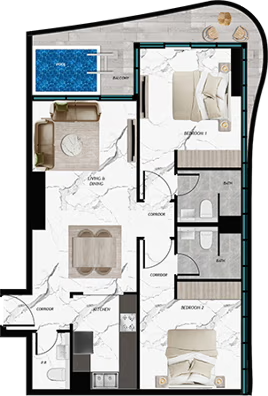 The building stands tall as a testament to modern design and sophistication. With a blend of contemporary aesthetics and functional design, it’s not just a place to live; it’s a statement of your discerning taste.